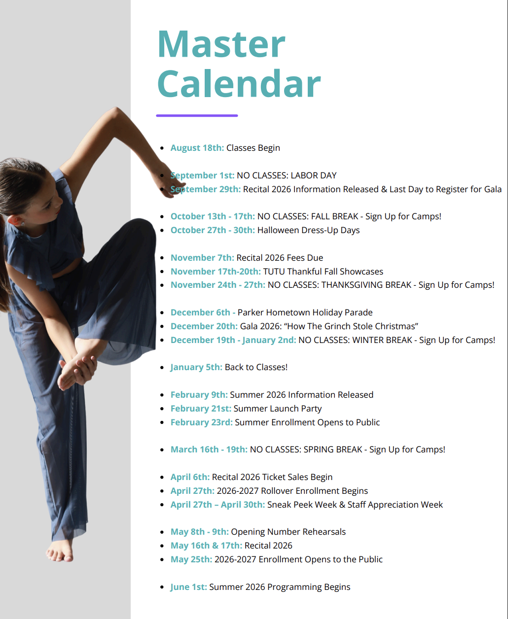 – LAST CALL for recital merchandise pre-orders! Order in our online shop!